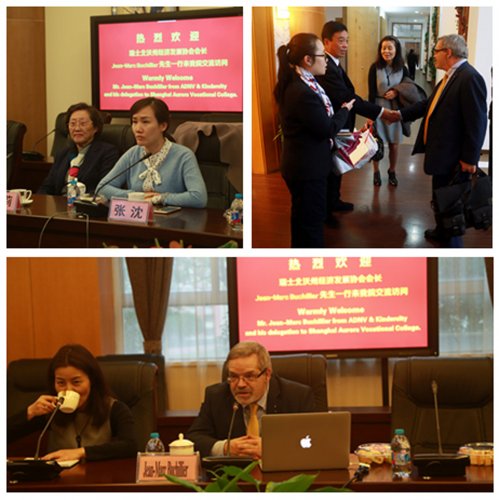2016年11月21日下午,瑞士北沃州經(jīng)濟(jì)發(fā)展協(xié)會(huì)會(huì)長(zhǎng)Jean-MarcBuchillier先生一行來到上海震旦職業(yè)學(xué)院參觀訪問。