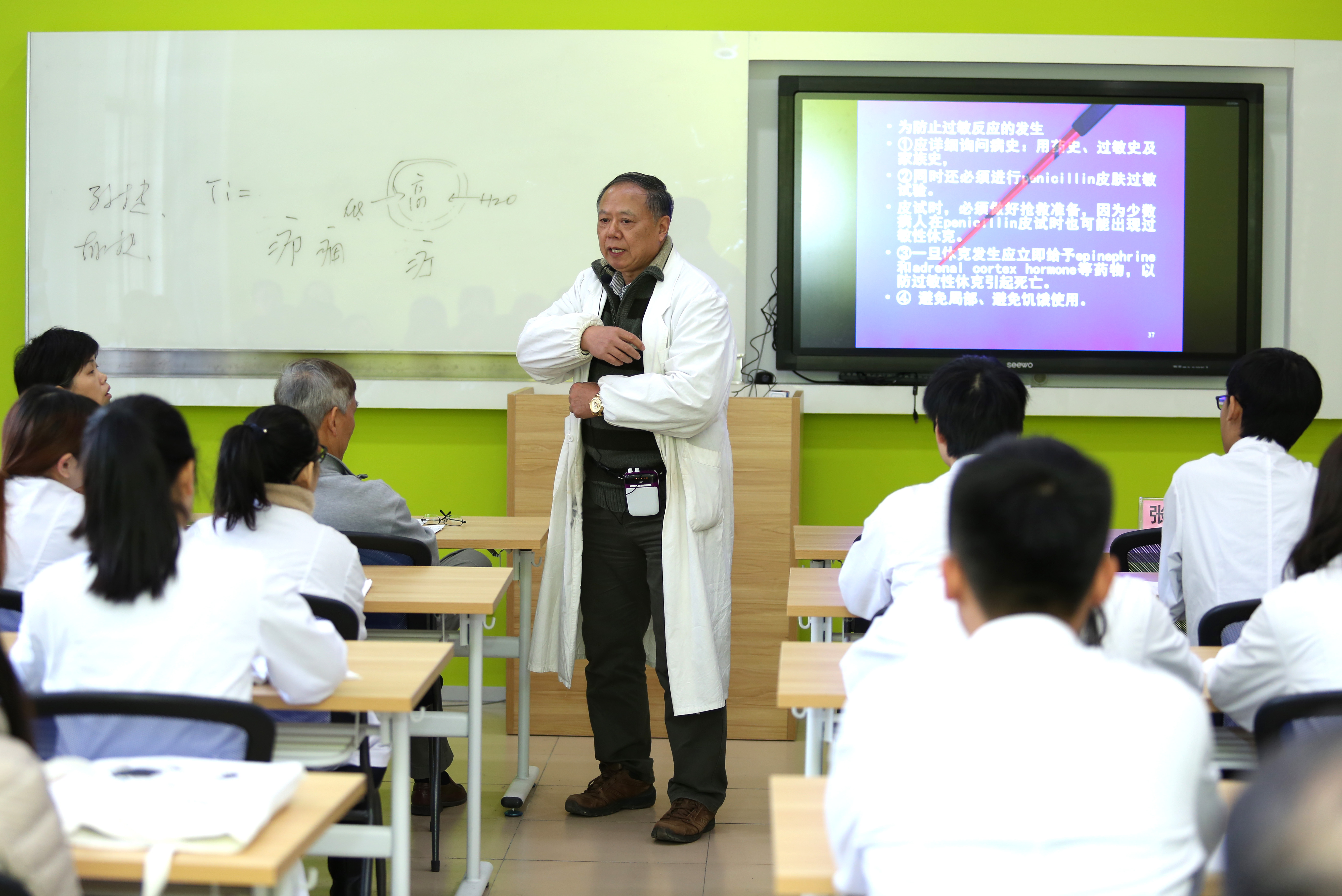 錢源偉教授從日常生活教育入手,將理論與實(shí)踐相結(jié)合,講述家長應(yīng)該如何處理家庭教育常見問題,課堂生動活潑;胡鵬飛副教授則從青霉素的發(fā)現(xiàn)、應(yīng)用、以及應(yīng)用中注意的問題三個方面講述了課堂內(nèi)容,語言幽默風(fēng)趣,邏輯清晰;姚黎明教授從基本的概念出發(fā),將晦澀的理論講解的通俗易懂,贏得在座老師和學(xué)生的一致好評;朱成慧副教授則注重理論的實(shí)際應(yīng)用,深入淺出、旁征博引,和學(xué)生進(jìn)行了良好的互動。