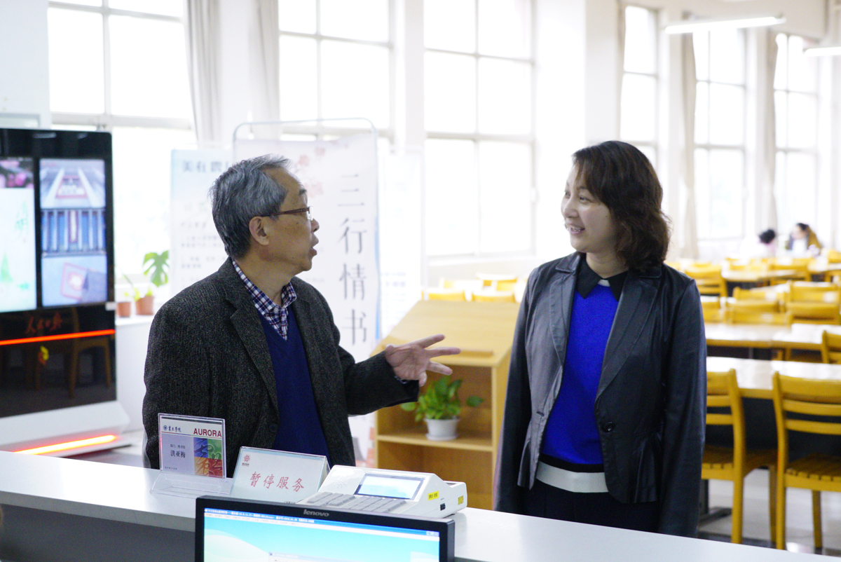 圖書館張健館長(zhǎng)介紹了近年來圖書館開展各項(xiàng)服務(wù)工作的基本情況,陪同來賓參觀了圖書館各閱覽書庫及功能區(qū)域,并感謝明復(fù)圖書館多年以來對(duì)我院圖書館資源建設(shè)的支持。隨后,兩館領(lǐng)導(dǎo)就今后在合作服務(wù)、資源共建、活動(dòng)互動(dòng)、網(wǎng)絡(luò)共享等方面工作進(jìn)行了洽談。
