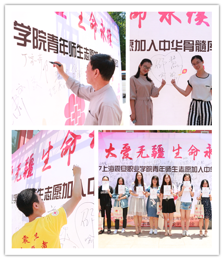 5月26日上午9點30分,上海震旦職業(yè)學院青年師生志愿加入中華骨髓庫現(xiàn)場樣本采集活動在我校體藝樓底樓舉行,寶山區(qū)紅會副會長金培生老師、校黨委書記黃晞建老師、院長陳力華老師、黨委副書記夏臻老師、文明辦主任黃敏老師、團委書記曹曉莉老師親臨了本次活動。