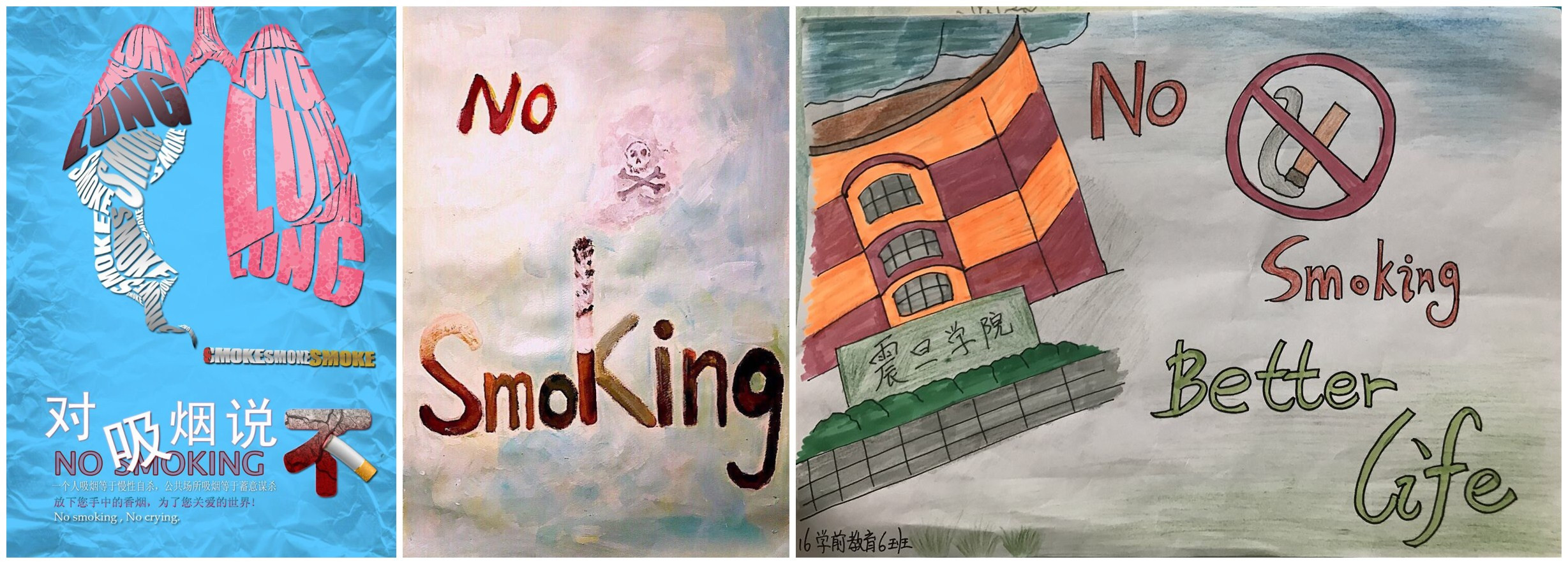 從4月25日至5月19日,在全校范圍開展以禁煙為主題的海報(bào)設(shè)計(jì)和禁煙標(biāo)志設(shè)計(jì)大賽,激發(fā)學(xué)生創(chuàng)造力與想象力的同時(shí),讓學(xué)生以校園主人翁的姿態(tài),將校園禁煙與自身的健康相關(guān)聯(lián)。各班級(jí)進(jìn)行初選后,由各學(xué)院進(jìn)行復(fù)選上報(bào)優(yōu)秀的作品,通過網(wǎng)絡(luò)投票和校評(píng)審小組評(píng)議,最終評(píng)選出5幅優(yōu)秀禁煙海報(bào)和6幅優(yōu)秀禁煙標(biāo)志作品。