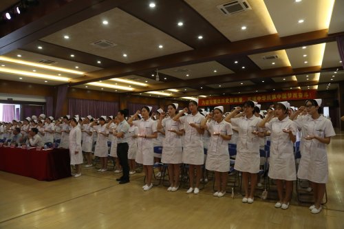伴隨著莊嚴的樂曲,15級護理專業(yè)全體同學(xué)依次上臺,授帽嘉賓為他們帶上圣潔的燕帽。他們接過前輩手中的燈,站在南丁格爾畫像前,左手點燃南丁格爾精神的紅燭,舉起右手莊嚴地許下誓言。授帽儀式是護生成為護士的重要時刻。學(xué)生楊懿、王雯婷代表全體15及護理專業(yè)學(xué)生發(fā)言,表示他們將以嶄新的精神風(fēng)貌、朝氣蓬勃的工作熱情、嚴謹求實的學(xué)習(xí)態(tài)度投入到未來的臨床實習(xí)工作中。校長陳力華教授作了熱情洋溢的致辭,他肯定了護理專業(yè)同學(xué)們的良好學(xué)習(xí)態(tài)度,殷切希望同學(xué)們以仁愛之心善待病人,做到熱心、細心、耐心,責(zé)任心爭當(dāng)一名優(yōu)秀護士,將南丁格爾精神崇高,發(fā)揚光大。