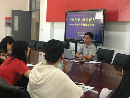 陳力華校長(zhǎng)以他三十多年的從教經(jīng)歷,教導(dǎo)新教師如何了解學(xué)生、如何自省、如何克服教學(xué)過程中的難關(guān)、如何做一名優(yōu)秀教師;并希望新教師努力實(shí)踐教書育人,爭(zhēng)做優(yōu)秀教育工作者。