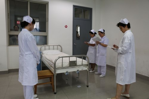 本次護理技能大賽參賽對象為16級護理專業(yè)學(xué)生,每班4名,共32名參賽選手。比賽項目是鋪備用床,比賽地點在1-510實訓(xùn)教室,擔(dān)任本次比賽的評委老師分別是許愛芝老師、曹婷老師和王云老師。