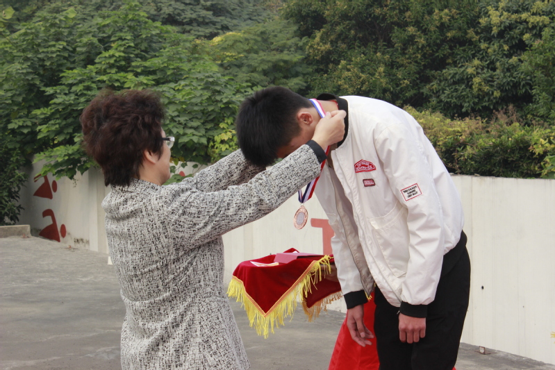 校領(lǐng)導(dǎo)為獲獎選手頒獎并合影