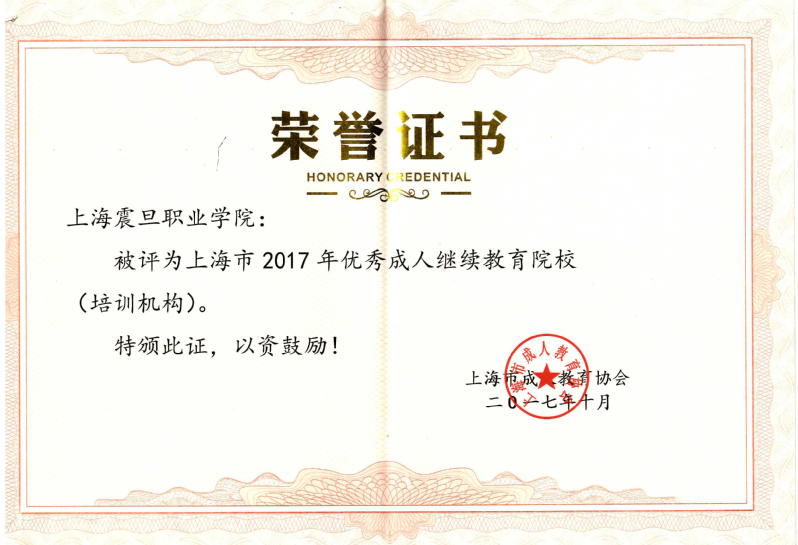 金秋十月,丹桂飄香。在這秋高氣爽的日子里,經(jīng)過學(xué)院答辯、專家嚴(yán)格評審、網(wǎng)上公示等一系列程序,上海震旦職業(yè)學(xué)院被上海市成人教育協(xié)會評為上海市2017年優(yōu)秀成人繼續(xù)教育院校。此項殊榮是全院師生共同努力的結(jié)果,也是對我院成人繼續(xù)教育的支持與鼓勵。希望在接下來的成人教育道路上,我院能認(rèn)真貫徹落實國家和上海的教育發(fā)展規(guī)劃綱要,積極開展成人繼續(xù)教育,滿足百姓需求,為百姓終身學(xué)習(xí)提供更好的服務(wù),為上海的學(xué)習(xí)型社會建設(shè)和終身教育事業(yè)發(fā)展做出更大貢獻。