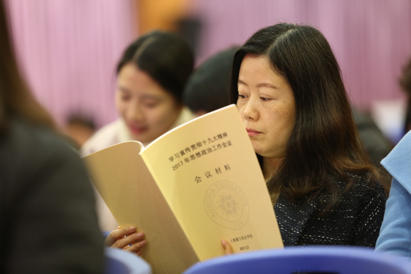 12月22日,我校在大禮堂隆重召開2017年思想政治工作會議。會議邀請民辦高校黨工委副書記王瑞杰蒞臨指導(dǎo),震旦教育集團(tuán)管委會主任張惠莉、董事長張沈、黨委書記黃晞建、校長陳力華和黨委副書記夏臻出席會議,各二級學(xué)院、行政部門負(fù)責(zé)人,全體教職工及學(xué)生代表參加會議。會議由陳力華校長主持。會議旨在學(xué)習(xí)宣傳貫徹黨的十九大精神,落實(shí)全國思政工作會議,激發(fā)廣大教職員工自覺發(fā)揮潛在工作能力,進(jìn)一步加強(qiáng)我校思政工作,把思政工作推上新臺階。