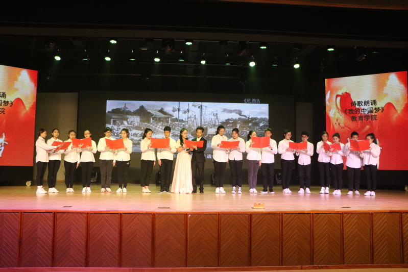 展演由17學前3的劉烊的一首《power wolf》拉開帷幕。在舞蹈板塊中, 16學前7班的楊怡雯同學表演的藏族民間舞《瑪吉阿米》,16學前4班的張星熠同學表演的中國舞《詠荷》,16級陳茹韞、師文靜、吳仙紅3位同學表演的舞蹈《風箏誤》,都使觀眾們眼前一亮,17學前5班曹雨暉同學表演的舞蹈《樂悠游·花兒》,16級的趙云慧等同學表演的啦啦操,迎來觀眾們一陣陣的喝彩與掌聲;來自16學前教育2班的張怡敏同學展示的一節(jié)小班科學活動的說課《好玩的水》,體現(xiàn)了說課對提高教師的備課質(zhì)量、教學效率和教師的組織能力、表達能力等的重要作用;英語故事板塊中,16學前7班吳雅菲《The Princess and Pea》 和17學前3 班欒婷婷《The Monster is Coming》,用繪本的英文故事淋漓盡致地表演,可全面幫助孩子建構(gòu)精神,培養(yǎng)多元智能;16學前6班劉璇宛如天籟的歌曲《關(guān)雎》和17學前6班李思甜《有形的翅膀》更是體現(xiàn)了教育學院學生的扎實的聲樂功底;由16、17級陳祎陽等同學帶來的琵琶、古箏、鋼琴、架子鼓《春雨》《林沖夜奔》等等的曲目,樂聲悠揚,溢滿了整個大禮堂,讓人陶醉,也將整個晚會推至高潮。最后,鏗鏘有力的詩歌朗誦《我的中國夢》為本屆才藝大賽展演畫下一個完美的句號。