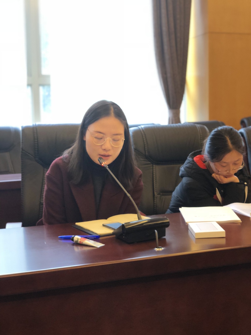 會議的第三項議程由學工部部長毛燕靜匯報本年度學生工作、輔導員隊伍建設以及年終考評情況。