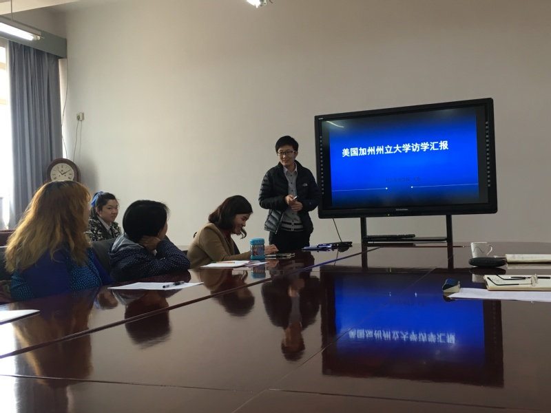 王歡老師訪問(wèn)的是美國(guó)加州州立大學(xué)富勒頓分校,研修專(zhuān)業(yè)是教育學(xué)和工商企業(yè)管理,她主要從專(zhuān)業(yè)課、教法課和跨文化交流課等方面做了匯報(bào),以及參加各種交流活動(dòng),內(nèi)容涉及美國(guó)高等教育的發(fā)展及歷史、領(lǐng)導(dǎo)力的培養(yǎng)、課程設(shè)計(jì)、文化多元性、如何設(shè)計(jì)科研課題等。最后她用十五個(gè)字對(duì)本次研修做了個(gè)人總結(jié):知識(shí)的豐富,思想的洗禮,心靈的震撼,理念的革新,發(fā)展的特色。