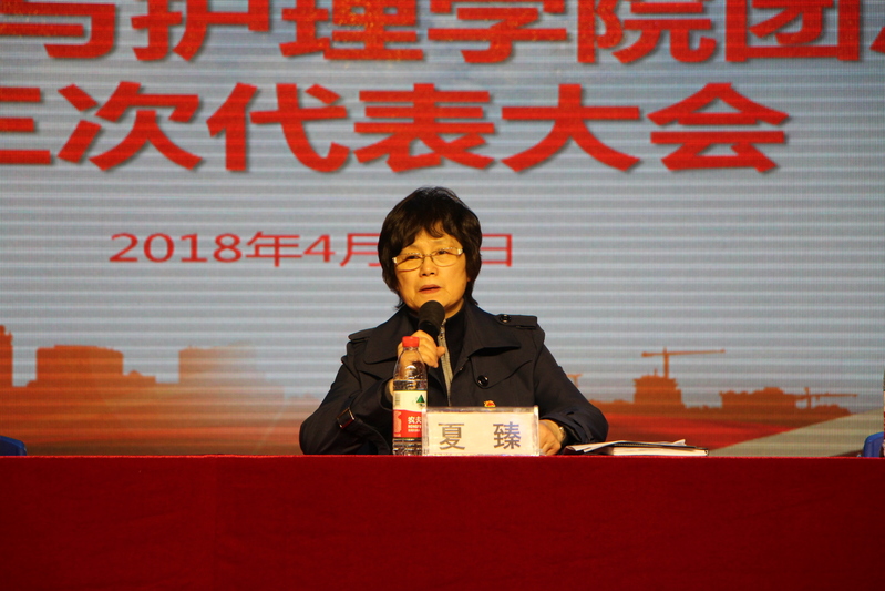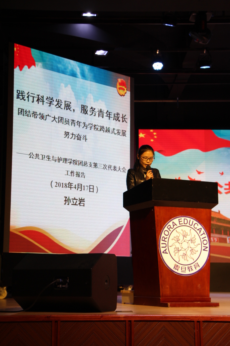 4月17日下午六點(diǎn),公共衛(wèi)生與護(hù)理學(xué)院在校大禮堂舉行團(tuán)總支第三次代表大會(huì),校黨委副書(shū)記夏臻、校團(tuán)委書(shū)記曹曉莉、公共衛(wèi)生與護(hù)理學(xué)院黨總支書(shū)記司曉晶、副書(shū)記孫立巖及各二級(jí)學(xué)院團(tuán)總支書(shū)記、輔導(dǎo)員出席了大會(huì)。16級(jí)護(hù)理專業(yè)輔導(dǎo)員相萍萍擔(dān)任本次大會(huì)主持人。