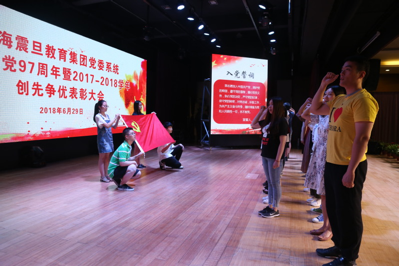 6月29日下午,上海震旦教育集團黨委系統(tǒng)紀念建黨97周年暨2017-2018學(xué)年創(chuàng)先爭優(yōu)表彰大會在學(xué)校大禮堂隆重舉行。學(xué)校黨政領(lǐng)導(dǎo),受表彰的先進基層黨組織,優(yōu)秀共產(chǎn)黨員,優(yōu)秀黨務(wù)工作者,各二級學(xué)院、職能部門負責人,新黨員,入黨積極分子參加了表彰大會。會議由黨委副書記夏臻主持。在雄壯有力的國歌聲中,表彰大會隆重拉開帷幕。