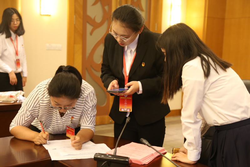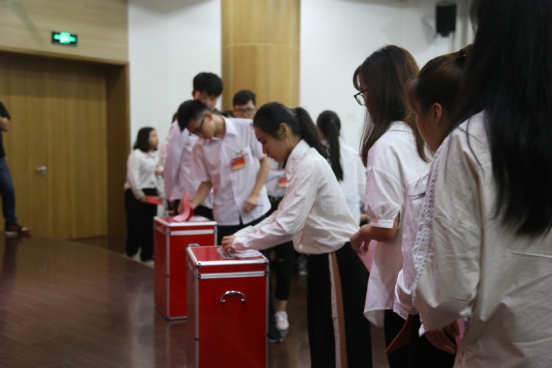 大會第五項議程,由提案工作組組長周懿婷同學做提案處理工作報告,大會共收到提案64件,內(nèi)容涉及學生成長成才、教育教學、校園文化、生活服務權(quán)益維護等方面,會后將有效提案提交至學校相關(guān)部門,并及時跟進后續(xù)提案處理工作。大會第六項議程,通過第八屆學生會主席團候選人名單(草案),并由校學生會副主席欒海貝介紹學生會主席團候選人情況。大會一致通過,王藝淇、周懿婷、傅文靜、阮智勇、胡冰、鄔吟吟六名同學作為本次學生會主席團選舉的正式候選人。大會第七項議程,通過第二屆學生常任代表委員會委員候選人名單(草案),并由第一屆常任委員會主任韓文軒介紹常任代表委員會候選人情況。大會一致通過,王愷、李萱、楊諾穎、肖忠明、金鑫、徐一帆、曹哲駿等11名同學成為本次學生會學生常任代表委員會委員正式候選人。大會第八項議程,通過大會選舉辦法(草案),并由校學生會副主席謝碧穎宣讀并通過大會選舉辦法(草案),大會一致舉手表決通過。大會第九項議程,通過大會監(jiān)票人員名單(草案),并由校學生會副主席李昊岳宣讀監(jiān)票人員名單(草案),大會一致通過黃鈺軒等6名同學擔任監(jiān)票人。在同學們有序進行投票后,進行大會第十一項議程,審議并通過《關(guān)于學生會工作報告的決議》,并由校學生會文藝部部長傅文靜宣讀。經(jīng)過監(jiān)票人員緊張的統(tǒng)計后,選舉工作組總監(jiān)票人黃鈺軒同學向大會報告選舉結(jié)果。