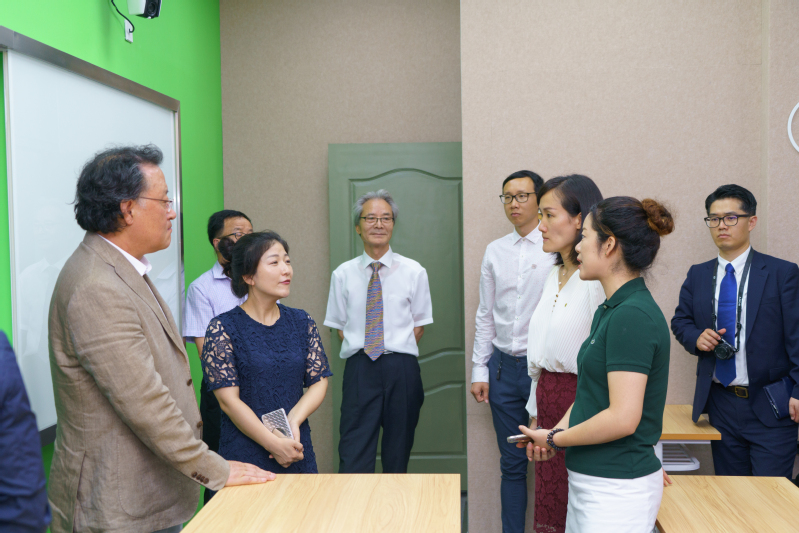 秋萬錫校長一行首先來到震旦外國語中學(xué)。震旦教育集團(tuán)創(chuàng)始人張惠莉致歡迎詞,她首先歡迎秋萬錫校長自去年之后再一次到訪震旦,并祝愿兩校今后的互訪更加多,兩校今后的交流合作能夠圓滿成功。隨后張沈董事長也表示了對(duì)秋萬錫校長一行來訪的歡迎,并期待兩校今后的合作與交流能更加密切,更加頻繁。陳力華校長代表上海震旦職業(yè)學(xué)院簽訂了兩校間交換生的合作協(xié)議。隨后,張沈董事長親自帶領(lǐng)秋萬錫校長一行參觀了震旦外國語中學(xué)。