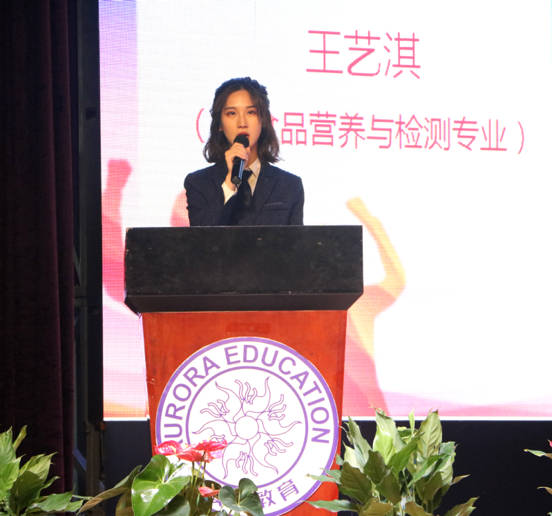 國家獎(jiǎng)學(xué)金獲得者、中共預(yù)備黨員、校團(tuán)委副書記、校學(xué)生會(huì)主席,2016級(jí)食品營養(yǎng)與檢測班的王藝淇同學(xué)代表全體學(xué)長發(fā)言。她話語樸實(shí),情感真摯,向同學(xué)們娓娓道來自己在震旦的成長經(jīng)歷,并用自己的經(jīng)歷向新生闡述如何“確定目標(biāo)、堅(jiān)持學(xué)習(xí)、培養(yǎng)能力、珍惜時(shí)間”四者并行規(guī)劃和充實(shí)自己的大學(xué)三年生活。