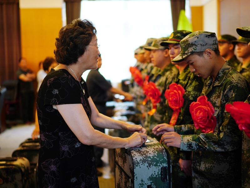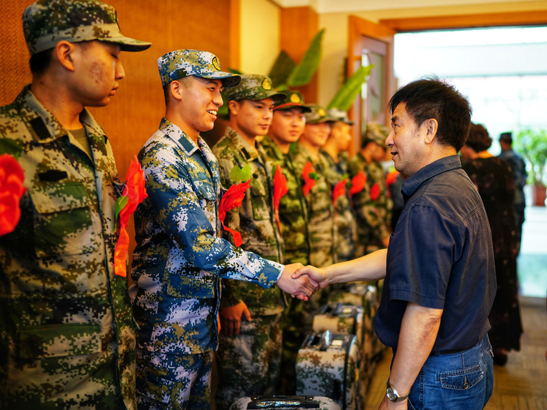 最后與會校領(lǐng)導(dǎo)為全體入伍新兵送上紀(jì)念品,并合影留念。