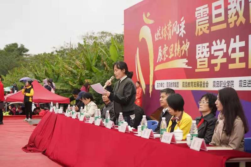 羅店鎮(zhèn)人大主席曹陽春,寶山區(qū)教育局職成教科科長楊金來,羅店鎮(zhèn)團(tuán)委副書記周穎潔,羅店經(jīng)濟(jì)發(fā)展公司總經(jīng)理顧斌,震旦教育發(fā)展基金會理事長、震旦教育集團(tuán)管委會主任張惠莉,震旦教育集團(tuán)董事長、管委會副主任張沈,震旦職業(yè)學(xué)院校長陳力華,震旦職業(yè)學(xué)院黨委副書記夏臻,震旦進(jìn)修學(xué)院常務(wù)副院長張達(dá)平,震旦中等專業(yè)學(xué)校常務(wù)副校長鐘劼菁,震旦外國語中學(xué)常務(wù)副校長何明,震旦外國語幼兒園園長夏苗出席了體育節(jié)。體育節(jié)由震旦教育集團(tuán)管委會副主任、震旦職業(yè)學(xué)院副校長王純玉主持。