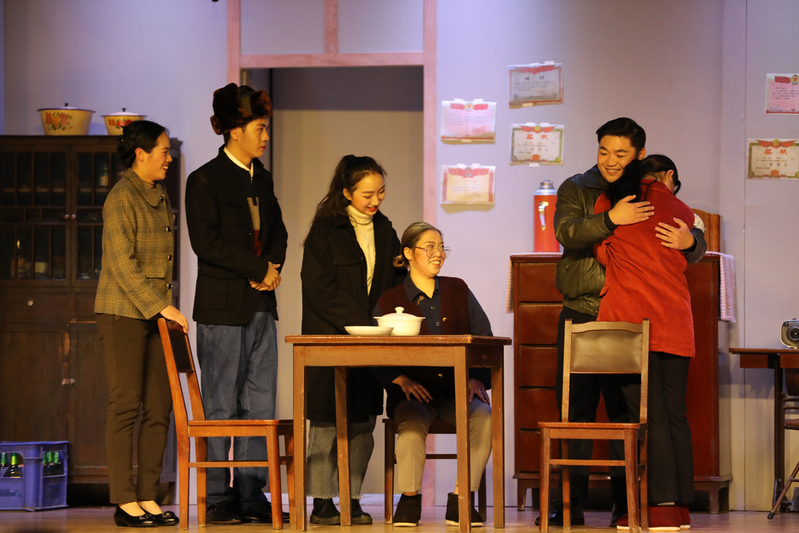 表演專業(yè)副主任宋藝?yán)蠋煋?dān)任該劇導(dǎo)演,通過仔細(xì)研究劇本和指導(dǎo)學(xué)生教學(xué)實(shí)踐,她對(duì)劇本也有了新的認(rèn)識(shí),在舞臺(tái)上對(duì)故事進(jìn)行了新的詮釋,形成了具有特色的震旦版《大哥》。16級(jí)的學(xué)生均出生在上世紀(jì)90年代后期,要他們?nèi)パ堇[出生之前的故事,理解當(dāng)時(shí)人的行為與思想,并不是件簡(jiǎn)單的事。宋藝?yán)蠋熢谂啪氝^程中,通過各種方法把學(xué)生帶入當(dāng)時(shí)的情境,一一為他們解釋劇中人的行動(dòng)線索、心理邏輯、時(shí)代背景,慢慢讓學(xué)生們“入了戲”、“動(dòng)了情”。