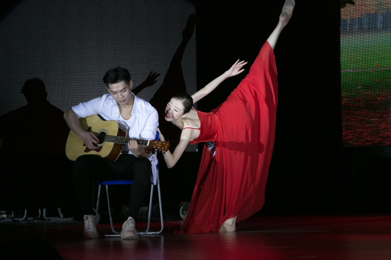本次比賽我校派出的8名選手均來(lái)自東方電影學(xué)院17、18級(jí)戲劇影視表演專業(yè)。我校參賽隊(duì)的兩大“亮點(diǎn)”也成為整個(gè)大賽的兩大“看點(diǎn)”:唯一一支非空乘專業(yè)隊(duì)伍和唯一一支全由男生組成的隊(duì)伍。這支“男子天團(tuán)”一出場(chǎng)就奪人眼球,獲得了熱烈的掌聲。面對(duì)其它參賽隊(duì)伍的專業(yè)表現(xiàn),我院的8名選手毫不怯場(chǎng)、自信滿滿,在風(fēng)采展示、知識(shí)問(wèn)答、情景劇表演、才藝展示環(huán)節(jié)中,都令人印象深刻,充分展露了良好的心理素質(zhì)與個(gè)人魅力。