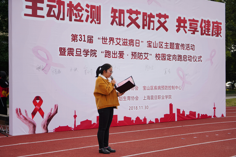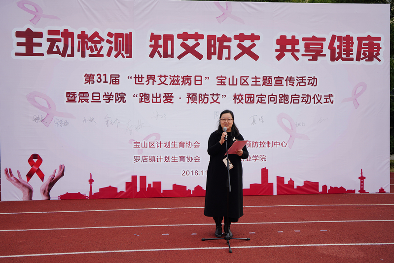 2018年12月1日是第31個(gè)“世界艾滋病日”,為進(jìn)一步推動(dòng)艾滋病防治工作,全面落實(shí)國(guó)家和上海市遏制與防治艾滋病“十三五”行動(dòng)計(jì)劃,營(yíng)造全民參與艾滋病防治工作的良好氛圍,深入開展艾滋病預(yù)防知識(shí)和反歧視理念宣傳工作,第31屆世界艾滋病日寶山區(qū)主題宣傳活動(dòng)暨我?!芭艹鰫邸ゎA(yù)防艾”校園定向跑啟動(dòng)儀式于11月30日在主校區(qū)操場(chǎng)正式舉行。出席本次活動(dòng)的領(lǐng)導(dǎo)有:市計(jì)劃生育協(xié)會(huì)周永立處長(zhǎng),寶山區(qū)衛(wèi)生計(jì)生委副主任、寶山區(qū)計(jì)劃生育協(xié)會(huì)會(huì)長(zhǎng)蘇玲女士,羅店鎮(zhèn)社會(huì)事業(yè)科主任唐秋紅女士,市計(jì)劃生育協(xié)會(huì)李琳老師,寶山區(qū)計(jì)劃生育協(xié)會(huì)金玉鳳老師、寶山區(qū)疾病預(yù)防控制中心劉效峰老師、校黨委副書記夏臻老師,來(lái)自滿天星青春健康同伴社的指導(dǎo)老師、志愿者們和校園定向跑活動(dòng)的12支隊(duì)伍共200余人參與了此次主題活動(dòng)。