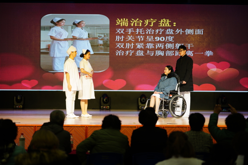 12月22日下午,公共衛(wèi)生與護理學(xué)院在校大禮堂舉辦了“發(fā)揚南丁格爾精神,展現(xiàn)人間的美”護理禮儀比賽。18級護理的四個班級組隊參賽。震旦教育發(fā)展基金會理事長張惠莉、校黨委副書記夏臻、實踐辦主任葉素梅、督導(dǎo)辦主任胡建國、教務(wù)處處長張瑩、宣傳部副部長金瑤、校團委書記曹曉莉、公共衛(wèi)生與護理學(xué)院院長趙佩君、副院長司曉晶蒞臨本次比賽并擔(dān)任評委。2018級護理專業(yè)和呼吸治療專業(yè)同學(xué)到場觀看學(xué)習(xí),2017級護理專業(yè)同學(xué)帶來了精彩的開場示范表演。