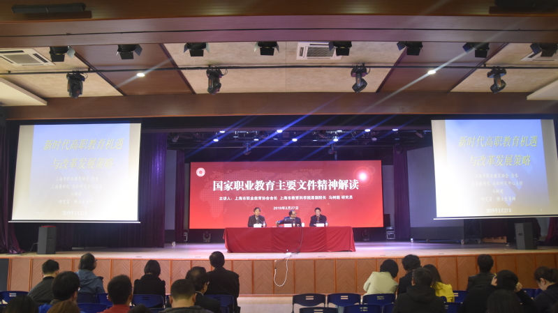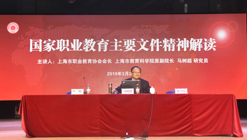 2019年3月27日下午,學(xué)校全體教職工在大禮堂進(jìn)行了2019年第一次全員培訓(xùn),邀請了上海市職業(yè)教育協(xié)會會長、上海教科院高職研究中心主任馬樹超教授做題為“新時(shí)代高職教育機(jī)遇與改革發(fā)展策略”的專題報(bào)告。