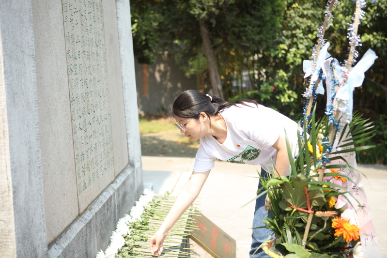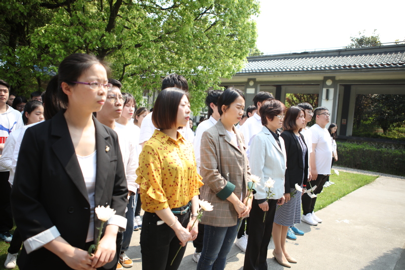 隨后,全體團(tuán)員在莊嚴(yán)肅穆的音樂(lè)中向革命烈士敬獻(xiàn)花籃、向革命烈士三鞠躬并列隊(duì)依次向革命烈士獻(xiàn)花。
