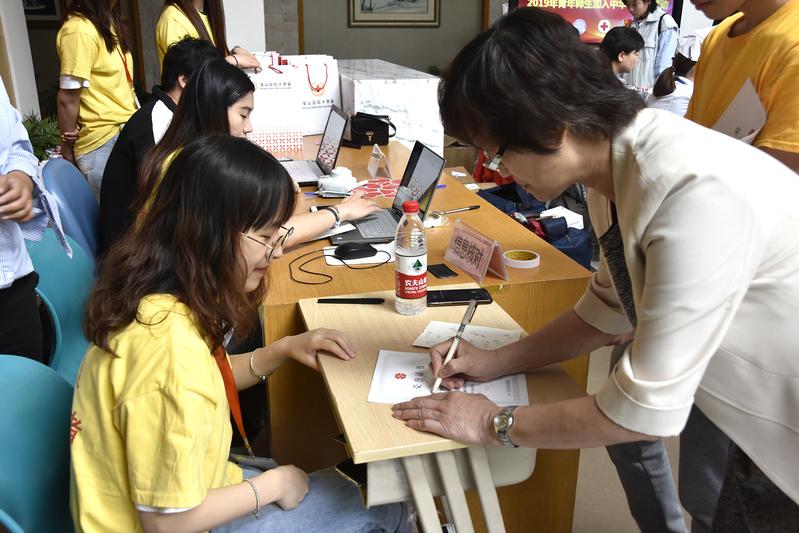 活動從上午9點持續(xù)到下午2點,前來入庫的同學(xué),在工作人員耐心細致地指導(dǎo)下進行信息登記、填寫表格。表格審核通過后,領(lǐng)取試管排隊采集6~8ml血液樣本完成入庫、領(lǐng)取榮譽證書。不僅有同學(xué)們的積極參與,我校青年教師也積極投身于此次活動中來,震旦中專鐘劼菁校長、閔亮老師和張文婧老師,公共衛(wèi)生與護理學(xué)院輔導(dǎo)員耿梅老師、張超老師、劉嬌嬌老師,教育學(xué)院張可可老師、李婧老師、王芳老師和信息辦程茂華老師也擼起袖子志愿加入中華骨髓庫,成為其中的一員。我校自2012年開展造血干細胞志愿者招募活動以來,今年已經(jīng)是第8個年頭了,震旦師生為這項活動付出了很大的努力,也將在學(xué)校領(lǐng)導(dǎo)的支持和帶動下,把這項活動辦出品牌、辦出特色。