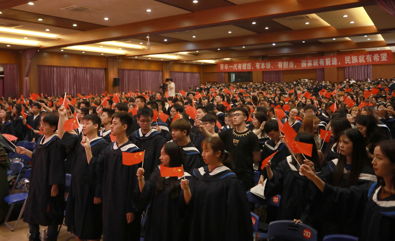 2019年正值新中國成立70周年、五四運(yùn)動100周年之際,畢業(yè)典禮現(xiàn)場全體畢業(yè)生和教職工共同高唱《我和我的祖國》、《畢業(yè)歌》,揮動國旗為祖國獻(xiàn)禮,為祖國祝福。畢業(yè)典禮圓滿落幕。