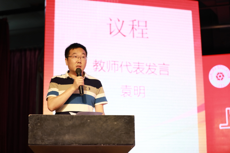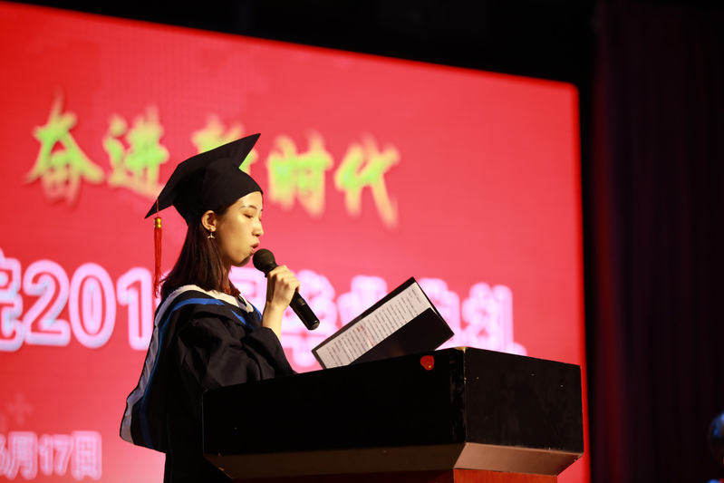 2019屆畢業(yè)生們?nèi)〉玫陌寥顺煽?,與我校每一位教師的付出是分不開的。機(jī)電工程學(xué)院副院長、市級精品課程帶頭人袁明老師代表我校全體教職工發(fā)言。作為計(jì)算機(jī)專業(yè)的袁老師提到在IT界著名的摩爾定律,大意是電腦性能每18個月會翻一番,而價格降為原來的一半,他希望每一位畢業(yè)生要時刻牢記,人生只有起點(diǎn),沒有終點(diǎn),要有終生學(xué)習(xí)、終生反省和終生實(shí)踐的能力。畢業(yè)并不代表青春的完結(jié),只是意味著行為的收斂和責(zé)任的加重,同學(xué)們要不忘繼續(xù)學(xué)習(xí)、完善自我,不負(fù)所學(xué),在未來干出一番事業(yè)。