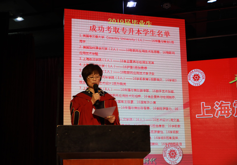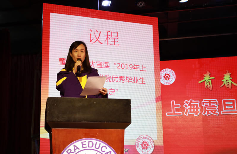典禮在莊嚴(yán)的國歌聲中展開序幕。首先黃晞建書記宣讀《2019年上海市普通高等學(xué)校優(yōu)秀畢業(yè)生表彰決定》;董事長張沈宣讀《2019年上海震旦職業(yè)學(xué)院優(yōu)秀畢業(yè)生表彰決定》;黨委副書記夏臻宣讀了《2019屆畢業(yè)生中考取全日制專升本學(xué)生名單》。表彰決定宣讀完畢,上海市高校優(yōu)秀畢業(yè)生以及校級優(yōu)秀畢業(yè)生依次上臺領(lǐng)取榮譽(yù)證書并合影。
