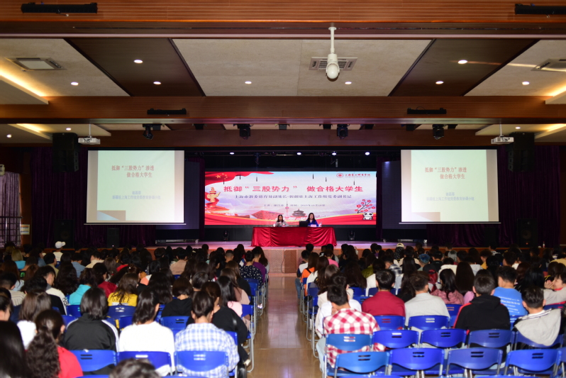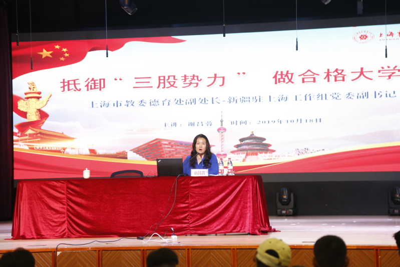 2019年10月18日下午,上海市教委德育處副處長、新疆駐上海工作組黨委副書記謝昌蓉在我校大禮堂,為2019級新疆籍學(xué)生做了一場題為“抵御‘三股勢力’,做合格大學(xué)生”的精彩講座。本次講座由上海震旦職業(yè)學(xué)院學(xué)生處處長毛燕靜主持,上海震旦職業(yè)學(xué)院全體2019級新疆籍學(xué)生、2019級輔導(dǎo)員老師參加。