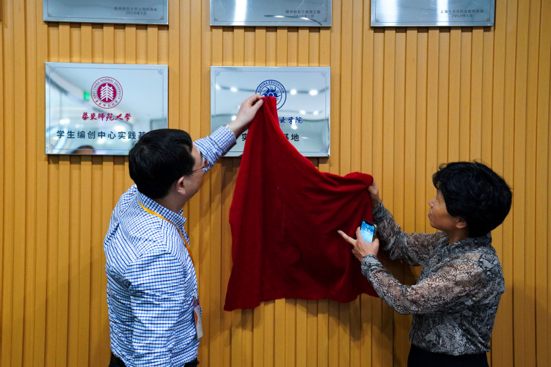 公司總經(jīng)理邱寶林對(duì)上海震旦職業(yè)學(xué)院領(lǐng)導(dǎo)和老師的來訪表示歡迎,他陪同王校長、喬校長一行參觀了愛豆堡直播基地的直播間、演播室及后期制作等場地,隨后共同為愛豆堡“上海震旦職業(yè)學(xué)院實(shí)踐基地”揭牌。