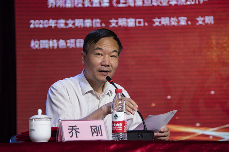 喬剛副校長宣讀《上海震旦職業(yè)學(xué)院2019-2020年度文明單位、文明窗口、文明處室、文明校園特色項(xiàng)目的決定》