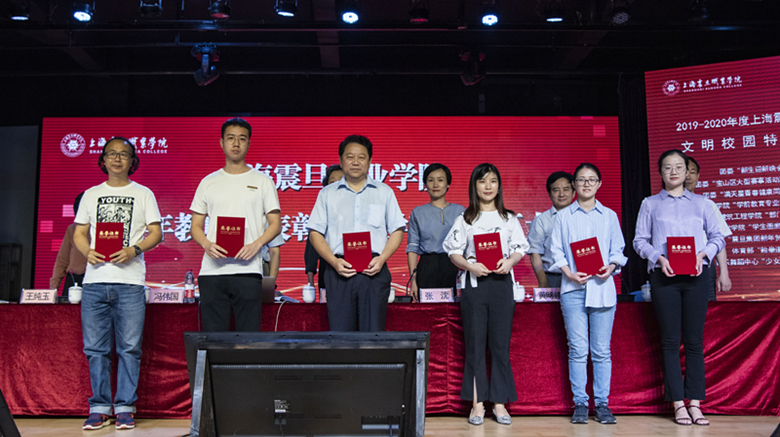 會上,張沈董事長宣讀了《上海震旦職業(yè)學(xué)院優(yōu)秀園丁及師德標(biāo)兵表彰決定》,葉子、喻璐等20位教師榮獲“優(yōu)秀園丁”榮譽(yù)稱號;魏友利、張石偉等7位教師榮獲“師德標(biāo)兵”榮譽(yù)稱號。同時(shí),喬剛副校長宣讀了《上海震旦職業(yè)學(xué)院2019-2020年度文明單位、文明窗口、文明處室、文明校園特色項(xiàng)目的決定》,對2019-2020年度學(xué)校表現(xiàn)突出的各文明單位進(jìn)行了表彰。