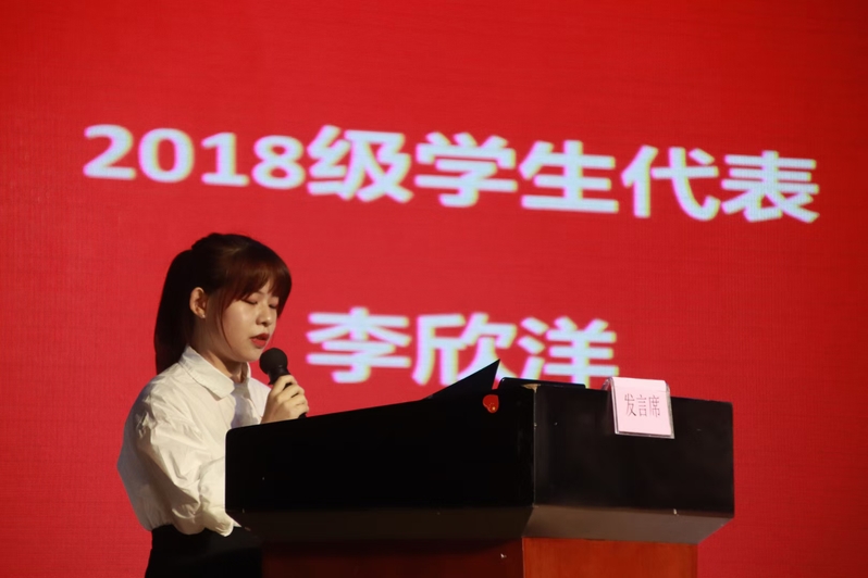 18級學(xué)前教育2班的李欣洋同學(xué)代表老生發(fā)言,她回首兩年的學(xué)習(xí)生活,分享了自己所見、所學(xué)、所獲,鼓勵(lì)新生既要理想遠(yuǎn)大,又要腳踏實(shí)地,勇敢面對學(xué)習(xí)生活中的挑戰(zhàn)。