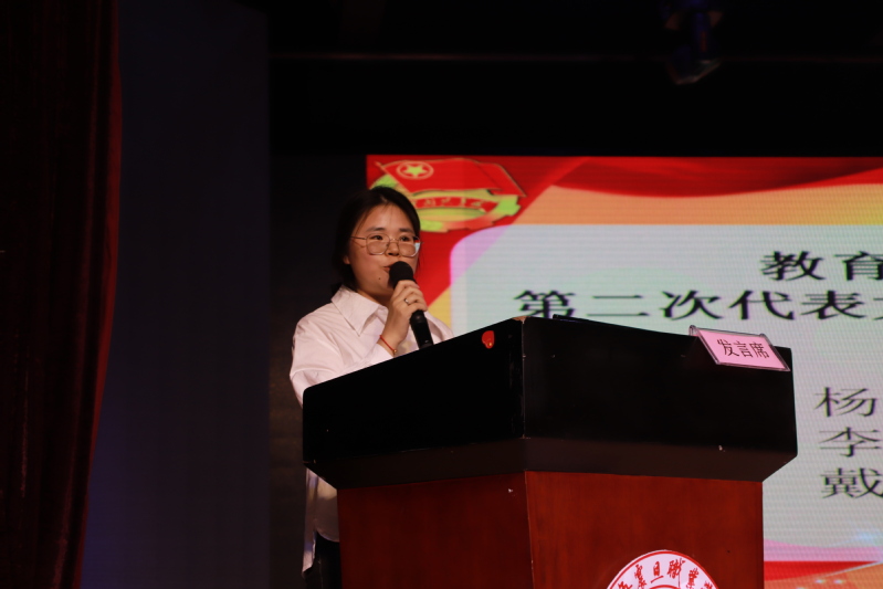 大會在國歌歌聲中緩緩拉開序幕,李婧老師向團(tuán)員代表作第一屆委員會工作報告。她帶領(lǐng)團(tuán)員代表們一起回顧了第一屆委員會的工作內(nèi)容,著重講述了疫情期間學(xué)院教育管理、志愿者活動、捐款活動和團(tuán)員心向黨等團(tuán)學(xué)工作,并結(jié)合學(xué)院特色闡述了未來教育學(xué)院團(tuán)總支的發(fā)展方向。