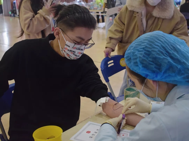 活動從上午9點持續(xù)到下午2點,前來入庫的同學(xué)們統(tǒng)一有序地戴好口罩、測量體溫、出示綠色隨申碼,在工作人員耐心細致地指導(dǎo)下領(lǐng)取表格,進行信息登記。信息核對通過后,有間隔地排隊采集6-8ml血液樣本完成入庫,領(lǐng)取榮譽證書。