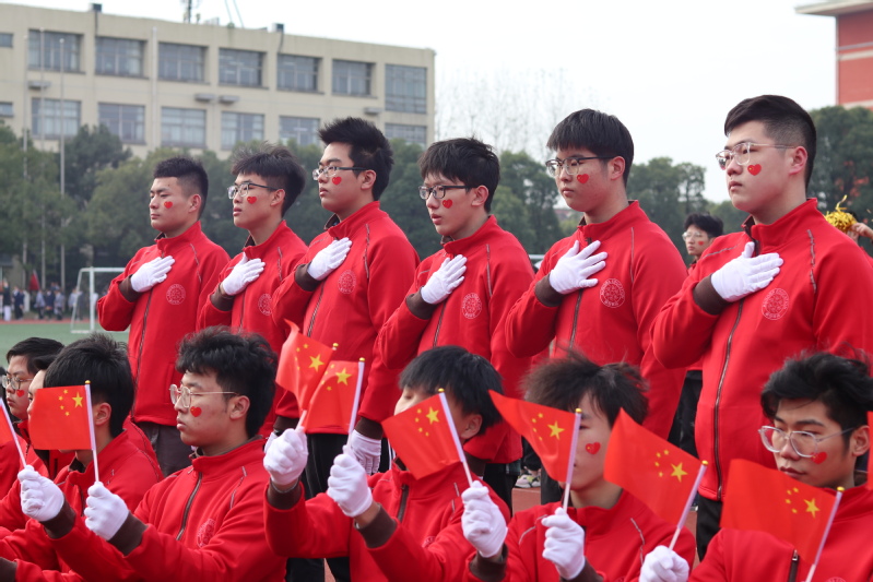 國旗隊(duì)列隊(duì)完畢,伴隨著莊嚴(yán)的國歌,鮮紅的國旗慢慢升起,本次體育節(jié)閉幕式正式開始。