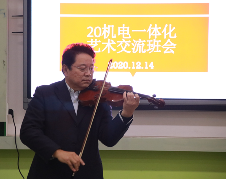 陳書記通過講解小提琴演奏技藝,闡明“知識易得、技能難求”、技能是要經(jīng)過反復(fù)歷練才能掌握的道理,進(jìn)而引導(dǎo)學(xué)生學(xué)會發(fā)現(xiàn)規(guī)律、掌握規(guī)律、運用規(guī)律,增強(qiáng)科學(xué)思維、豐富藝術(shù)素養(yǎng)、提高專業(yè)技能。他邊講解樂理、邊示范演奏,班會的新內(nèi)容、新形式,給同學(xué)們帶來了新感受,取得了很好的效果。
