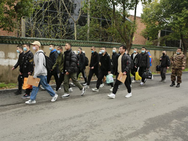 3月12日早晨我校17名預(yù)定新兵,在寶山區(qū)民兵訓(xùn)練基地外集合完畢。我校武裝部徐磊老師作簡單動員講話后,17名新兵向家長們敬禮道別,有序進(jìn)入訓(xùn)練基地。