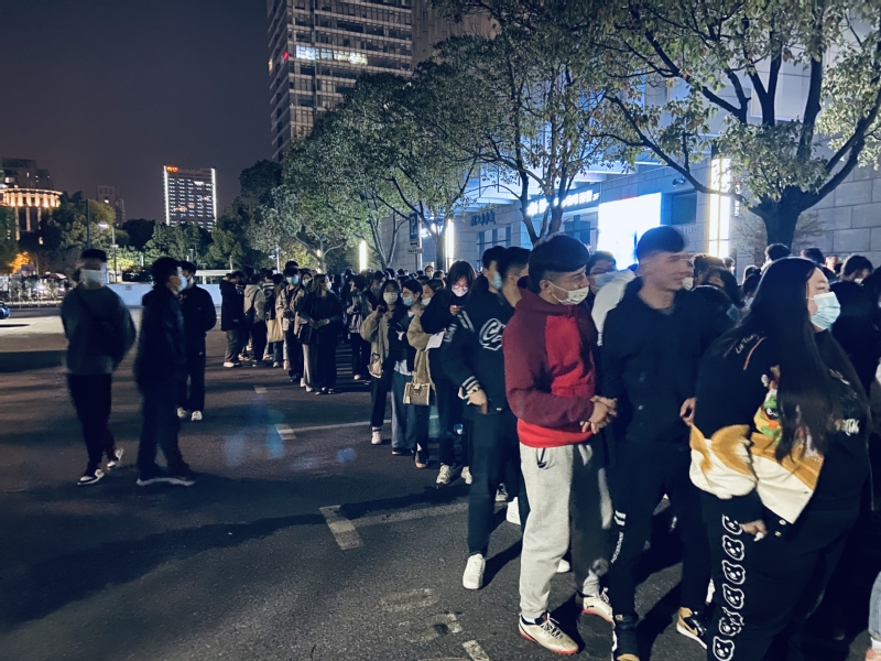 夜幕下學(xué)生有序排隊(duì)等待接種