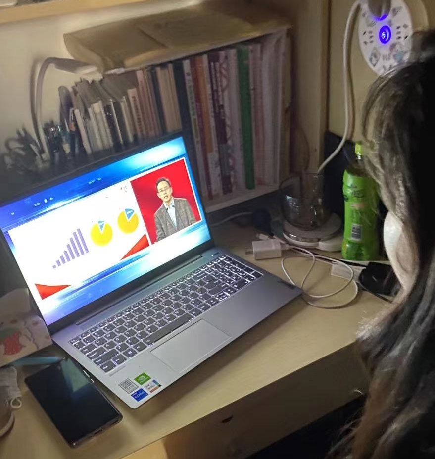 2.營(yíng)造學(xué)習(xí)氛圍。學(xué)校積極引領(lǐng)學(xué)生在以黨史教育為重點(diǎn)的“四史”教育中,學(xué)習(xí)了解掌握黨史知識(shí),思考領(lǐng)悟把握黨的一百年歷史中貫穿的大邏輯、大道理、大趨勢(shì)。學(xué)生們?cè)诠らg、在課余、在教室、在宿舍,或通過(guò)手機(jī),或使用平板,或打開(kāi)電腦,認(rèn)真學(xué)習(xí)時(shí)不我待,深刻領(lǐng)悟聚精會(huì)神,讓我們看到了虎虎生風(fēng)的青春脈動(dòng),洋溢著勃勃向上的蓬勃朝氣?!皩W(xué)黨史、強(qiáng)信念、跟黨走”,讓青春成為黨千秋偉業(yè)中生機(jī)勃發(fā)、高歌猛進(jìn)的持久風(fēng)景。