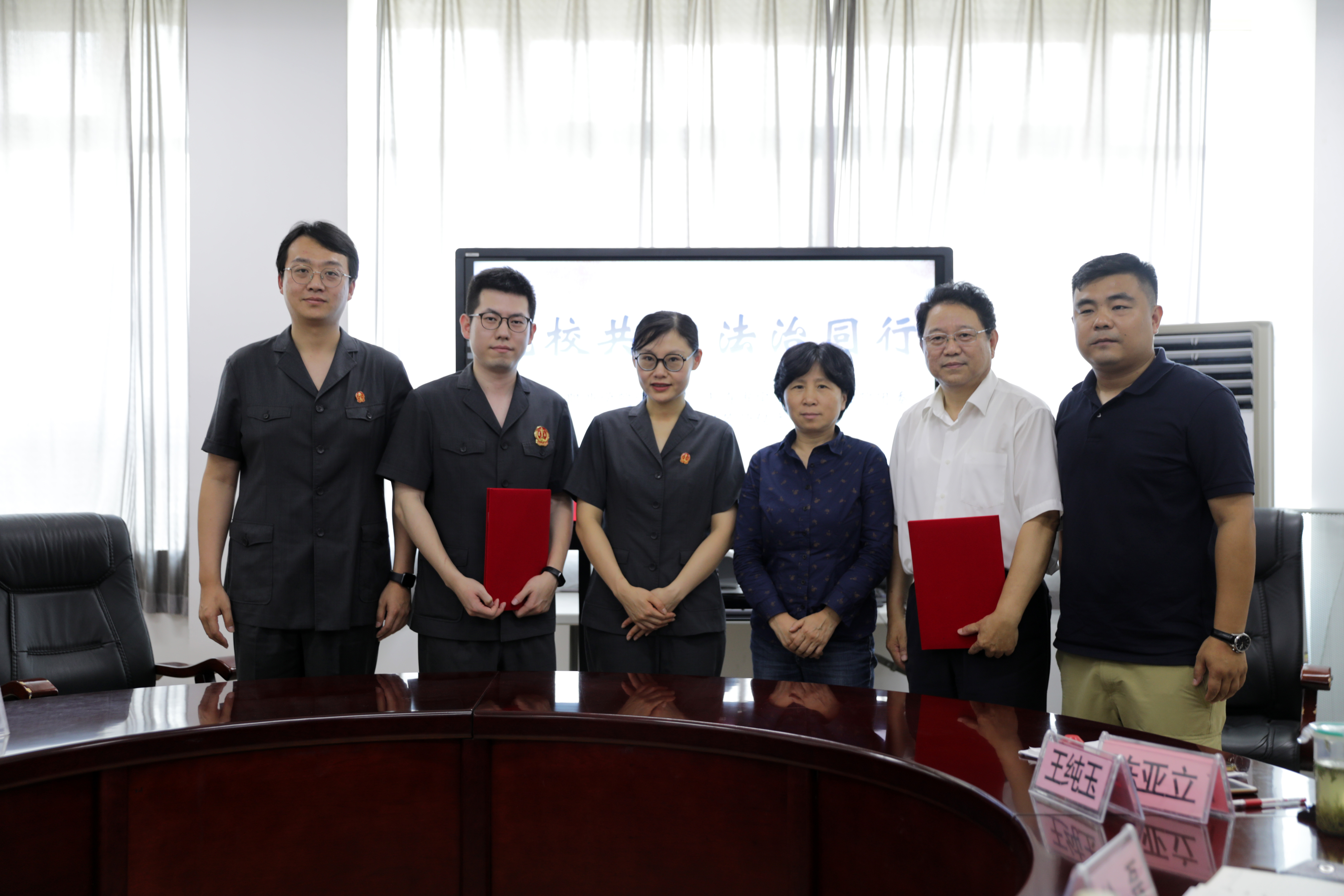 陳亞立部長與法院賈路法官分別代表雙方簽訂了共建協(xié)議。協(xié)議約定,院校雙方建立大學(xué)生社會實習(xí)實踐合作交流機制,法院定期提供實習(xí)生項目供我校學(xué)生參加,主要承擔(dān)法院通知、送達(dá)、歸檔等輔助性審判工作,組織學(xué)生參觀法院、旁聽庭審、法律實習(xí)、課題調(diào)研等,并舉辦普法教育和法律咨詢等活動,雙方相互配合,共同做好共建的履職與宣傳工作。