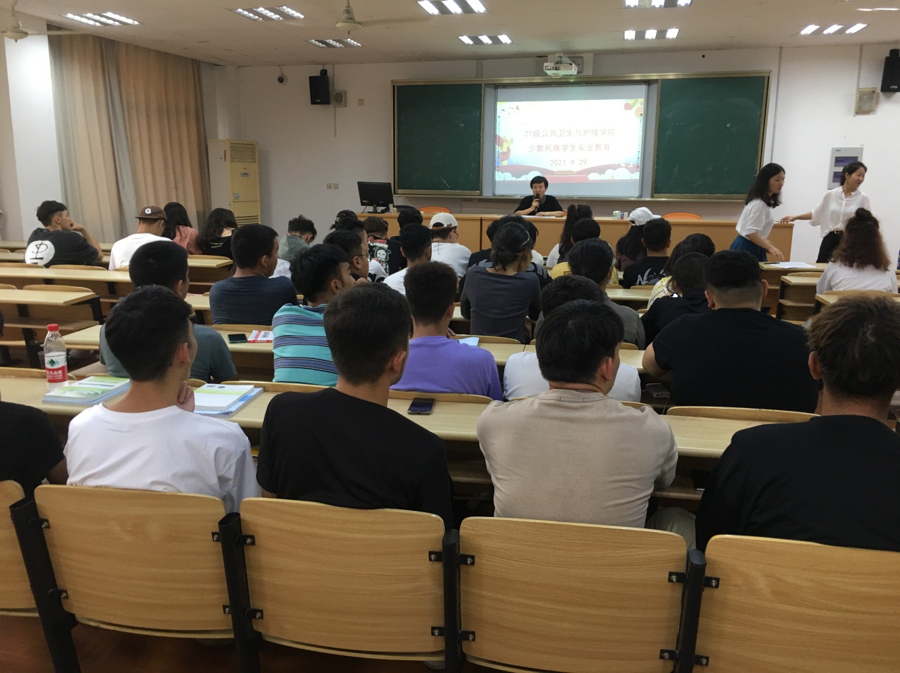 2021年9月29日,公共衛(wèi)生與護(hù)理學(xué)院邀請學(xué)校內(nèi)派教師巴了黑婭為學(xué)院21級少數(shù)民族學(xué)生開展了安全教育座談會。學(xué)院黨總支書記王文華、各班級輔導(dǎo)員以及少數(shù)民族同學(xué)參加了此次座談會。