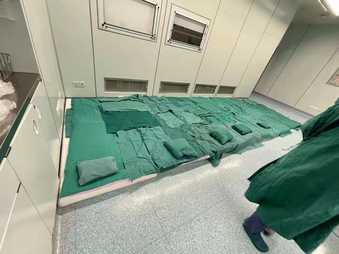 根據(jù)防疫要求,實(shí)習(xí)生們井然有序的進(jìn)行核酸檢測,領(lǐng)取帳篷,睡袋等防疫物資。此外,實(shí)習(xí)護(hù)士還負(fù)責(zé)與住院病人和家屬一一溝通,告知家屬住院部的治療不會(huì)受到影響,安撫他們的緊張情緒,讓大家保持良好的心態(tài),積極配合治療。雖然條件簡陋,物資短缺,醫(yī)務(wù)人員只能睡在地板上,但是大家都能夠嚴(yán)格按照醫(yī)院的要求,沒有任何怨言,這不僅是對實(shí)習(xí)生們生理上的一次測驗(yàn),更是對大家精神上的一次考驗(yàn),讓我們明白了作為醫(yī)務(wù)工作者不忘初心,牢記使命,響應(yīng)黨的號召,義無反顧沖上疫情防控第一線的意義和責(zé)任。