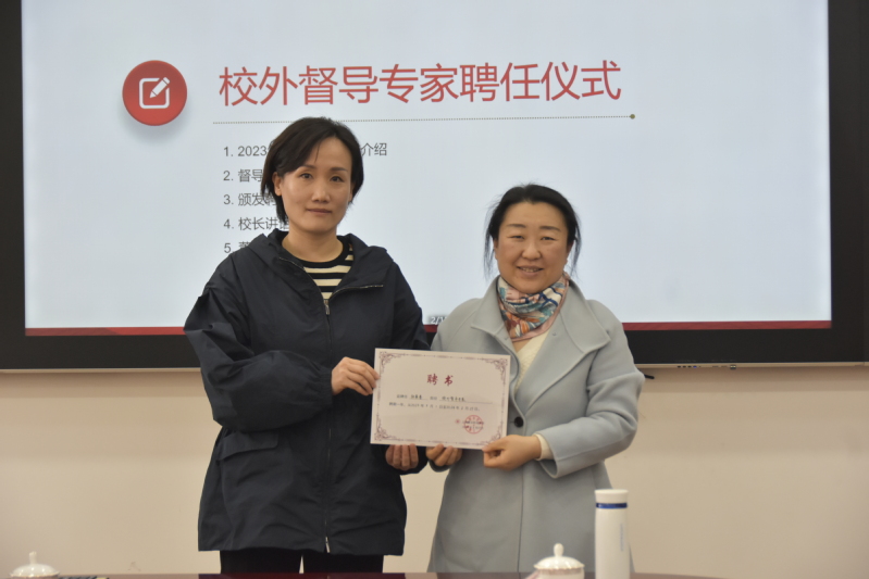 張沈董事長代表學校向本屆督導專家頒發(fā)聘書。她對新一屆督導專家的加盟表示熱烈歡迎,希望督導專家和學校有更多的交流,為學校發(fā)展決策出力。本屆共聘任16位校外教學督導專家,基本上覆蓋了學校現(xiàn)有的學科和專業(yè)以及五年一貫制的專業(yè)。