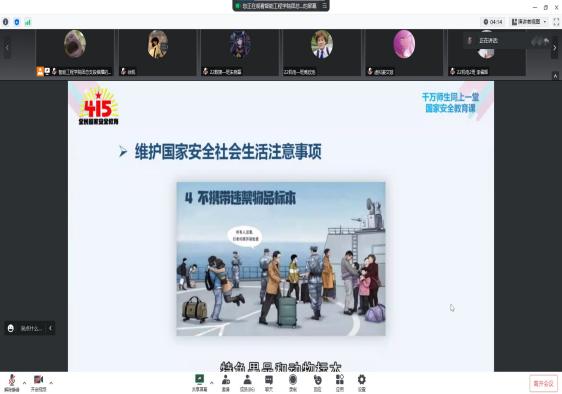 4月15日是第8個(gè)全民國(guó)家安全教育日,為將國(guó)家安全融入到同學(xué)們的日常生活中,強(qiáng)化同學(xué)們保護(hù)國(guó)家安全的意識(shí),智能工程學(xué)院于2023年4月15日在騰訊會(huì)議開(kāi)展了“千萬(wàn)師生同上一堂國(guó)家安全教育課”主題活動(dòng),學(xué)院黨總支書(shū)記余家晶老師出席會(huì)議,智能工程學(xué)院22級(jí)新生180余人參加。本次會(huì)議由團(tuán)總支副書(shū)記徐凱老師主持。