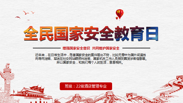 1.班會背景。近年來,在日常生活中,危害國家安全的案件層出不窮,比如無意中為國外間諜當向?qū)Ф姑?、軍迷在社交網(wǎng)站曬資料泄密、國家機關工作人員朋友圈發(fā)涉密信息等。所以國家安全,和我們每個人的生活,息息相關。