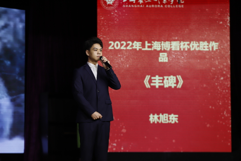 21戲劇影視表演1班林旭東帶來詩朗誦《豐碑》,該作品已進入2022年上海市博看杯誦讀大賽決賽。盡管時光無情地飛逝,但我們都會牢記那些拋頭顱、灑熱血的日子,我們更會銘記那個扣人心弦、轟轟烈烈的年代。